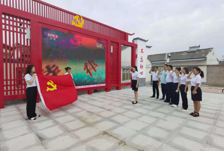 “我志愿加入中國共產(chǎn)黨,擁護(hù)黨的綱領(lǐng),遵守黨的章程……”6月25日,相山區(qū)鐘樓鄉(xiāng)黨群活動(dòng)廣場,6名新黨員代表佩戴黨徽,舉起右手,握緊拳頭,在領(lǐng)誓人的帶領(lǐng)下,面向黨旗,莊嚴(yán)宣誓,雄厚的宣誓聲在廣場上久久回蕩。